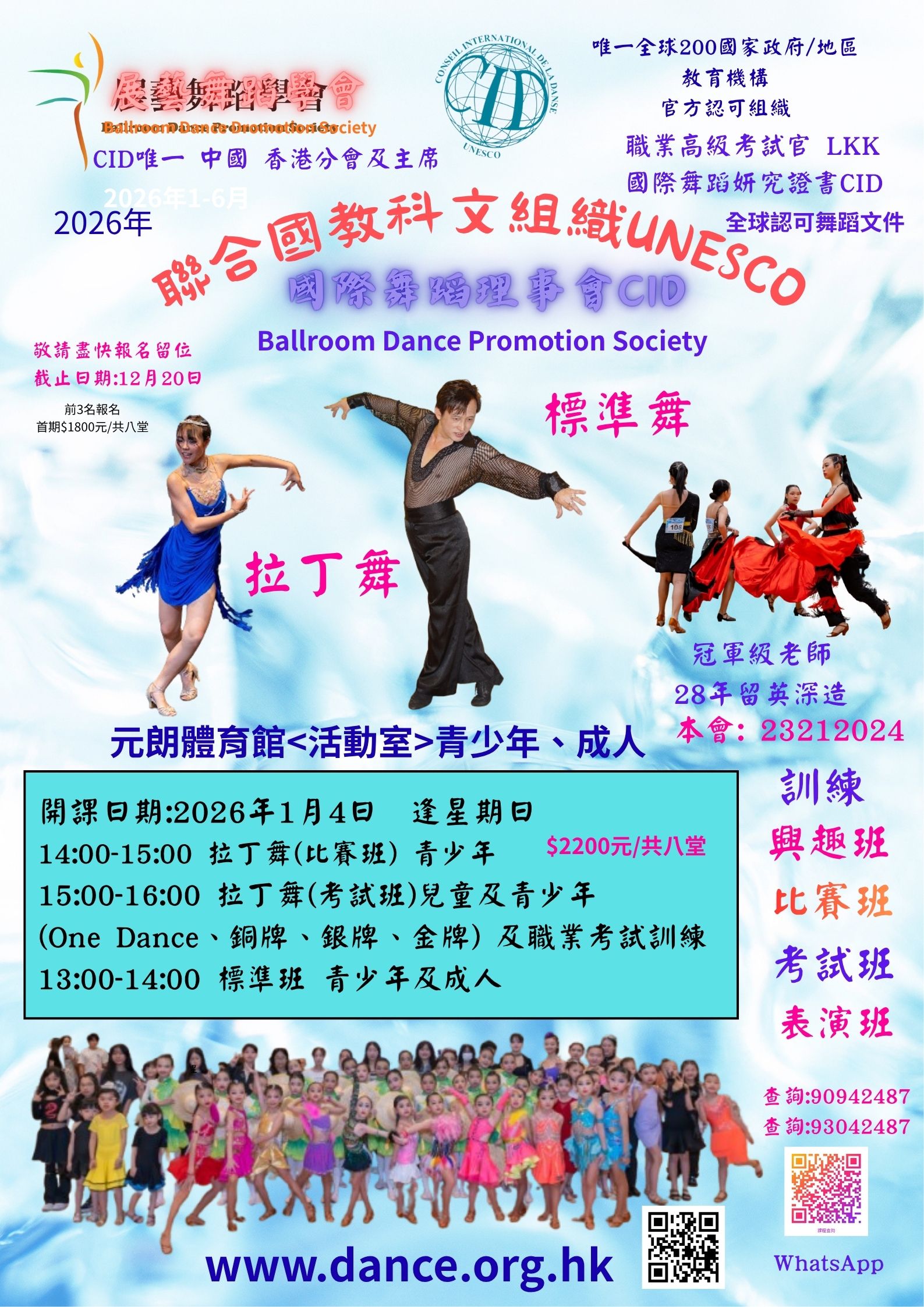 | 元朗體育館 活動室2026年 逢星期日 拉丁舞&標準舞 |