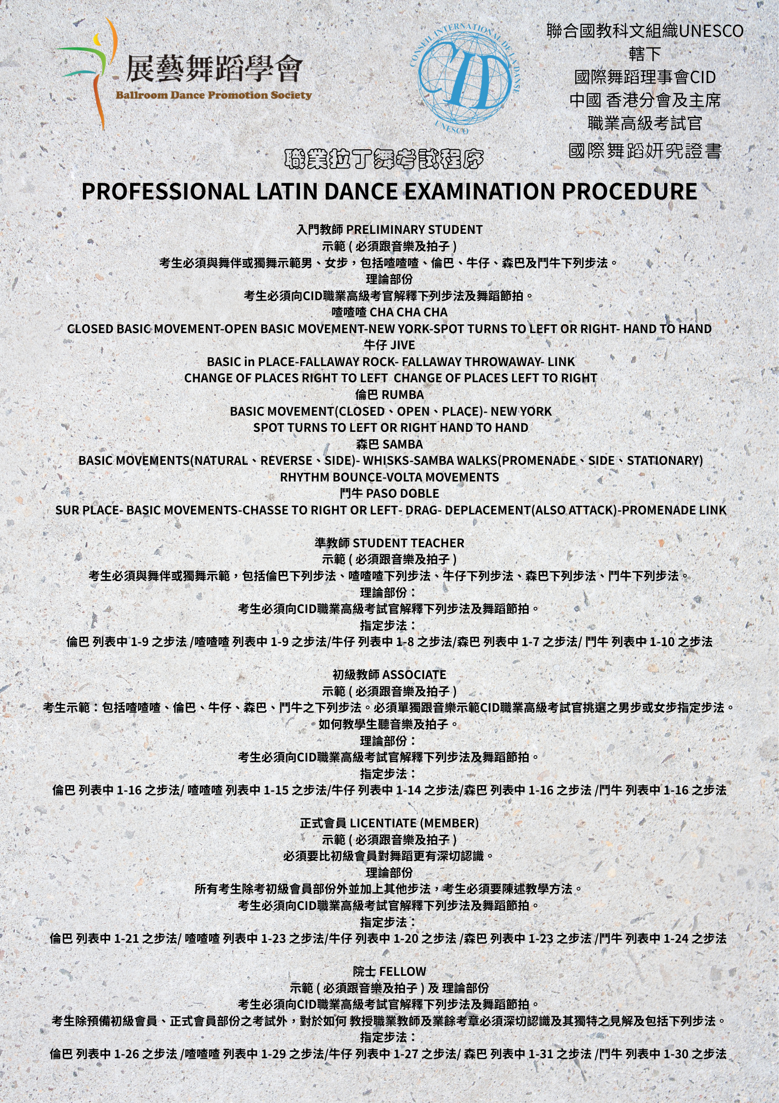 國際舞蹈理事會 CID 國際職業妍究證書 拉丁舞考試 程序簡介