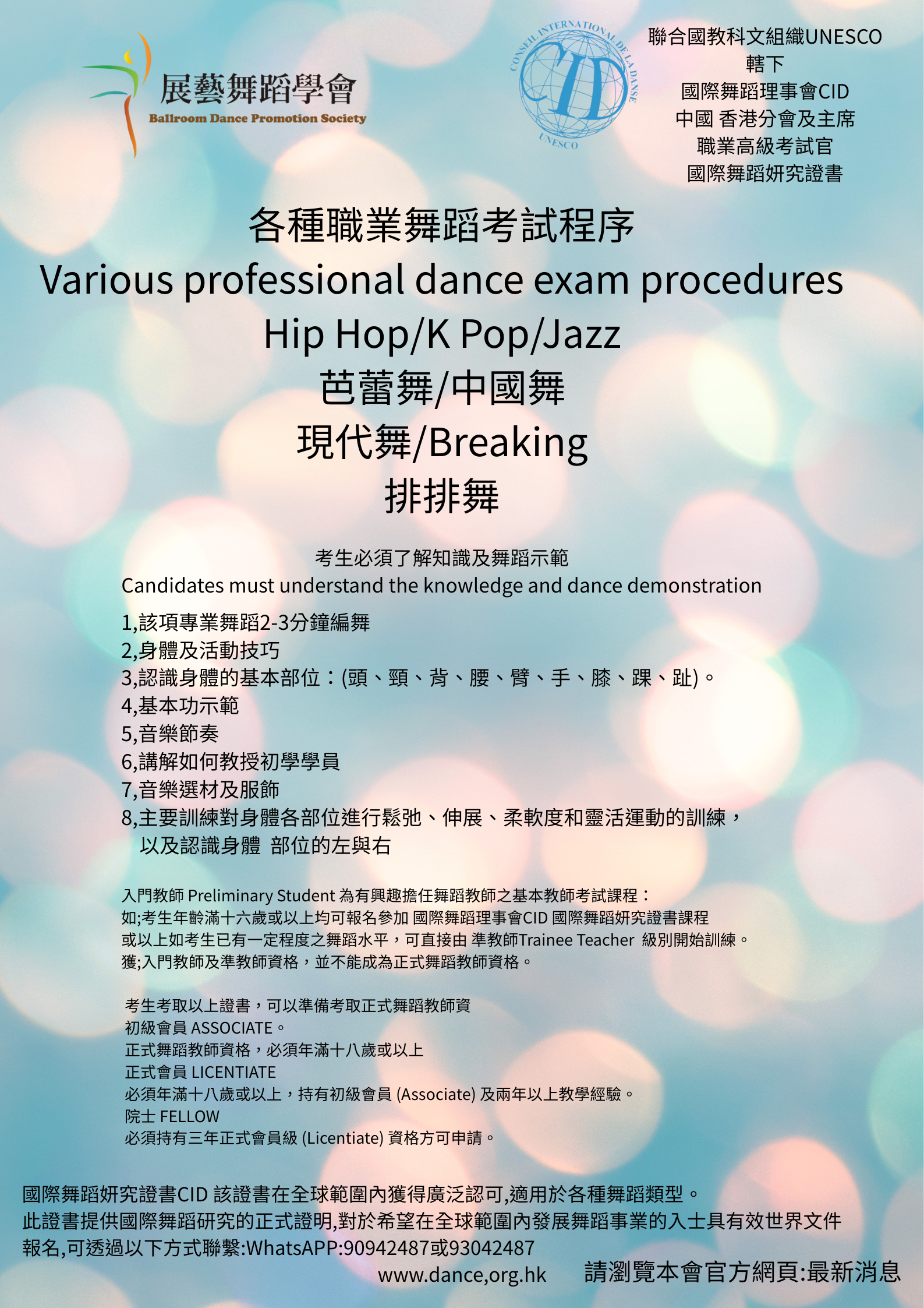 國際舞蹈理事會 CID 國際職業妍究證書 各種舞蹈考試程序